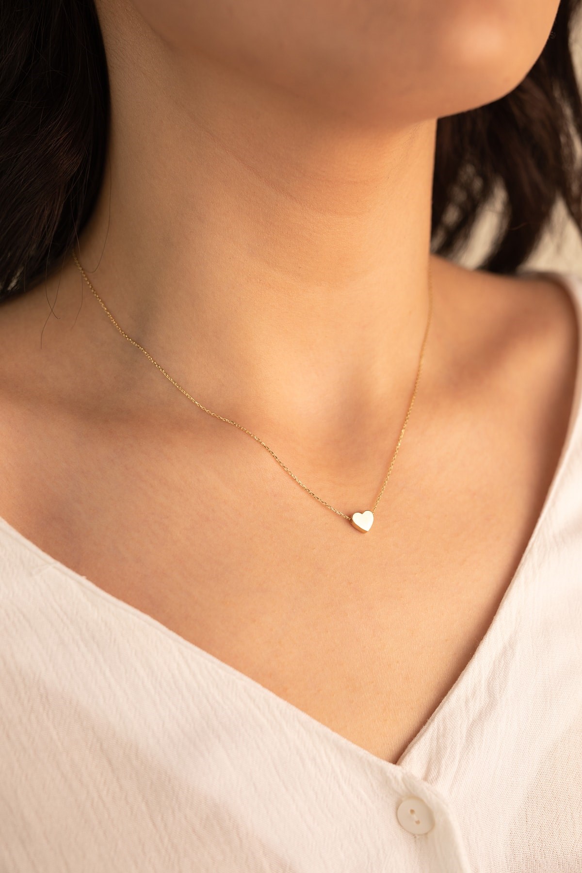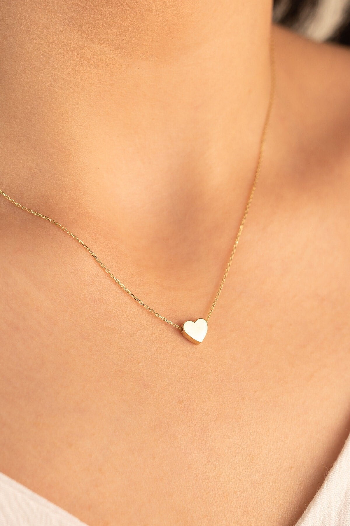 Altın Renk Taşsız Kalp Kolye